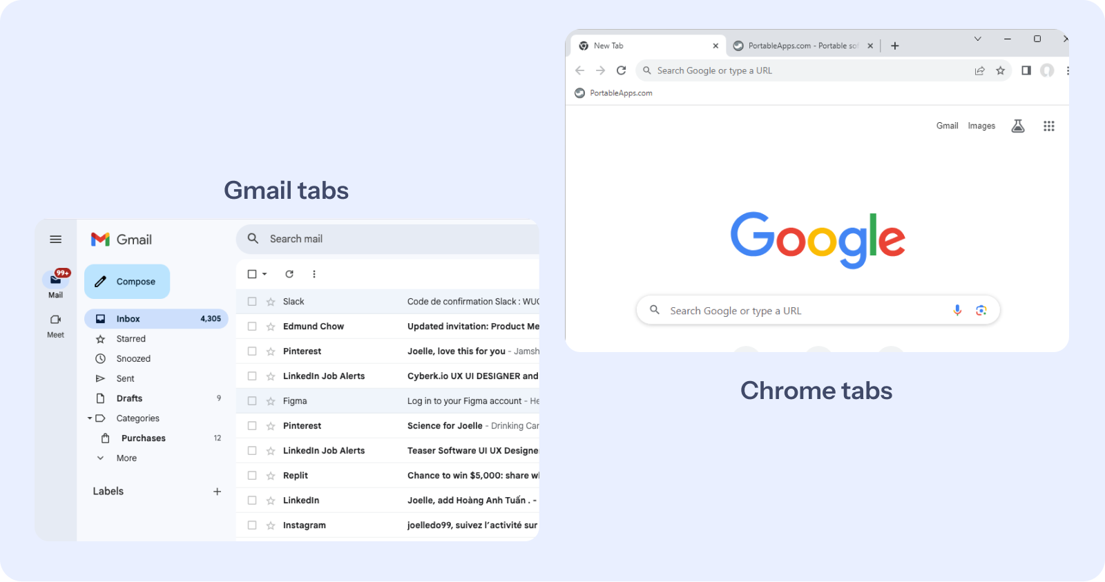 Before exploring solutions, I looked at how people already manage multiple contexts in tools they use every day. Gmail, Chrome, Messenger and Telegram all solve the same underlying problem: one user, multiple active contexts, no loss of orientation. In every case the pattern is identical. A lightweight switching layer sits above the content, the content updates underneath, and the user never loses their place. Doctors already understood this model from outside of work. The solution did not need to introduce a new interaction paradigm. It needed to borrow one they already knew.