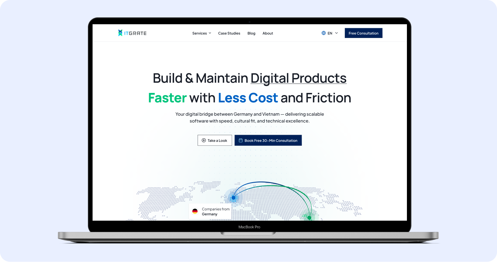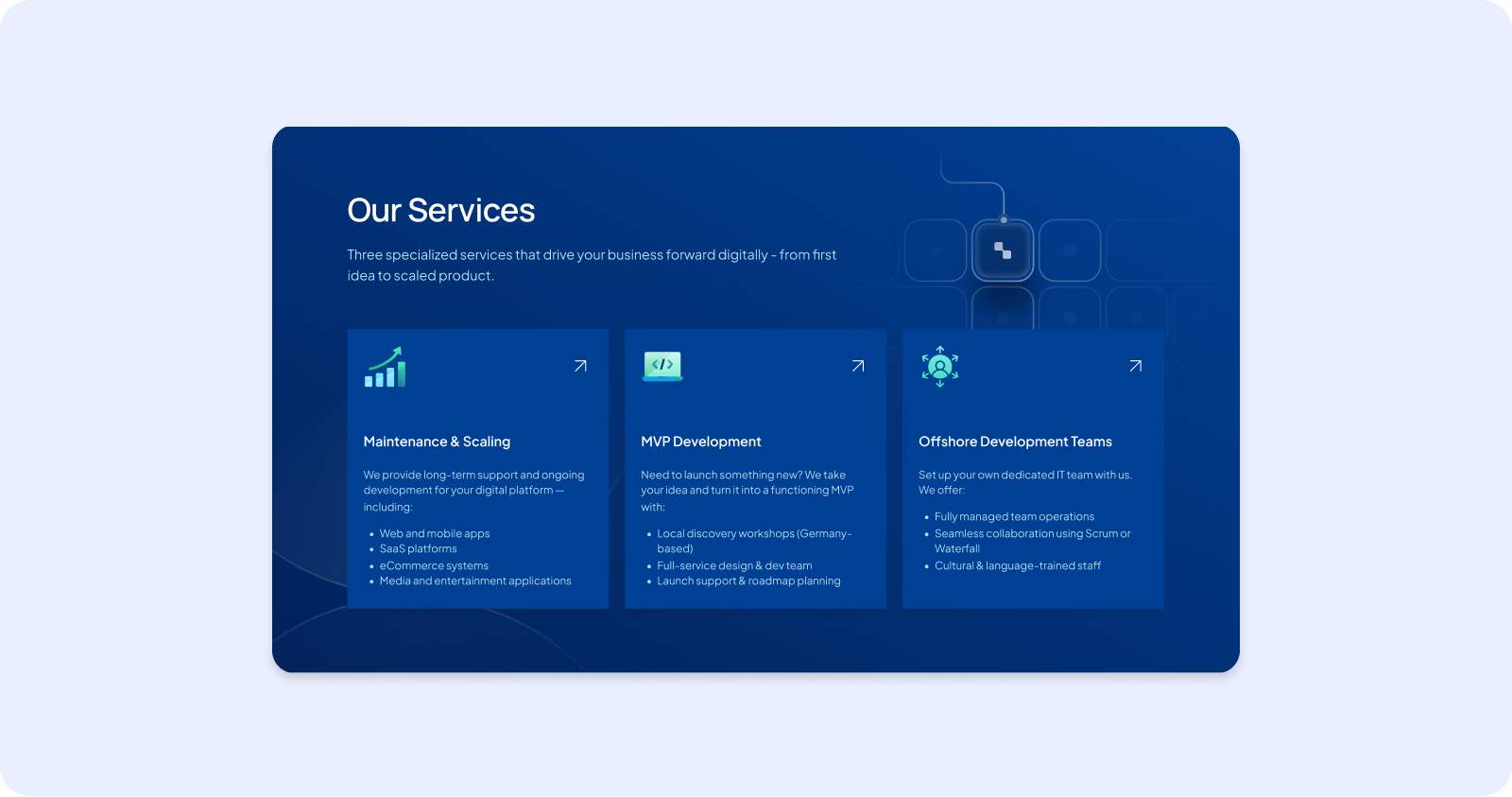 ITGate connects German companies with outsourced tech talent — a market where credibility, clarity, and professional tone aren't nice-to-haves, they're the entire conversion lever. The brief was to enhance the existing site, but the real design challenge was subtler: how do you make a service business feel trustworthy to risk-averse enterprise buyers at a glance?